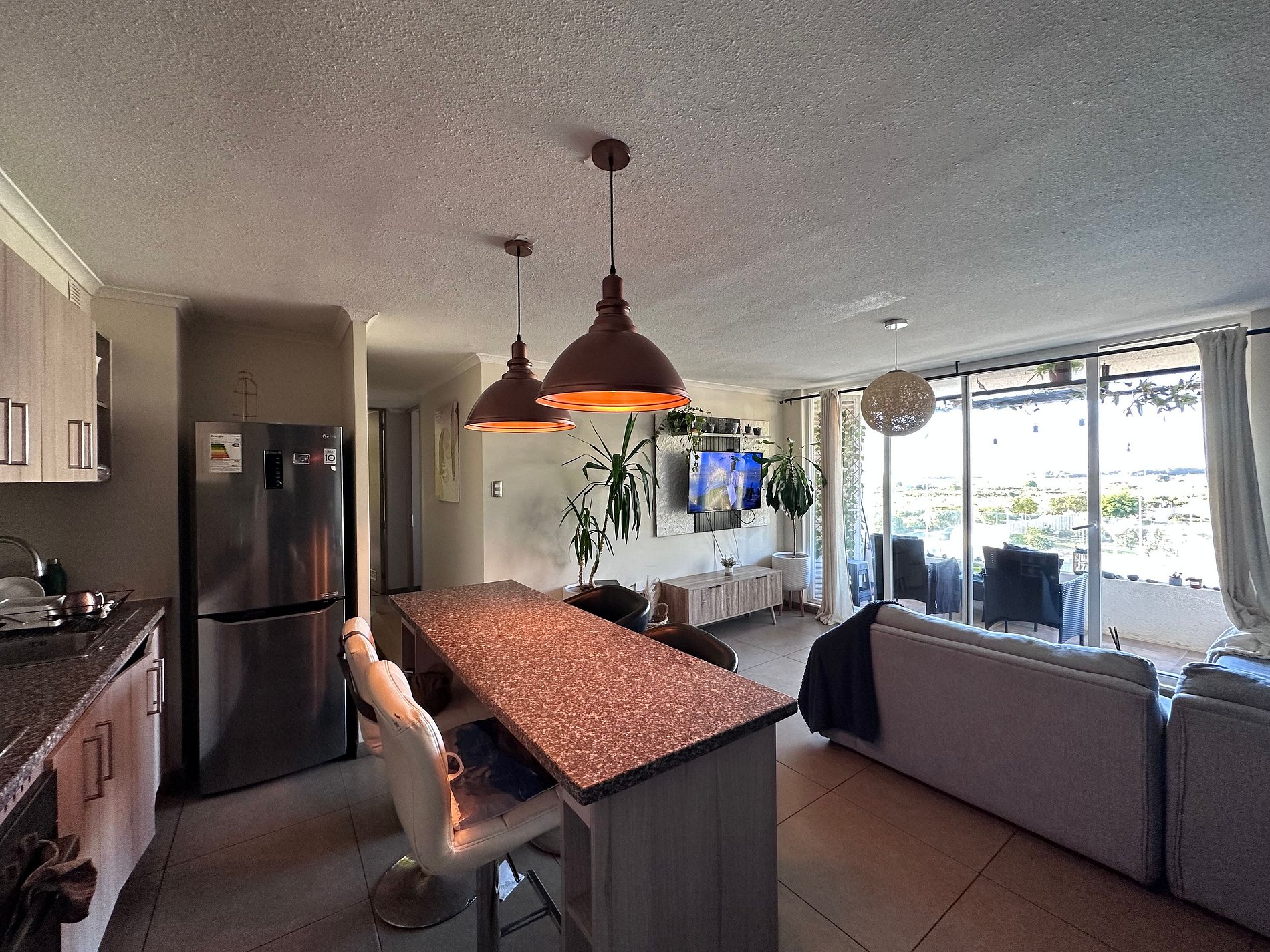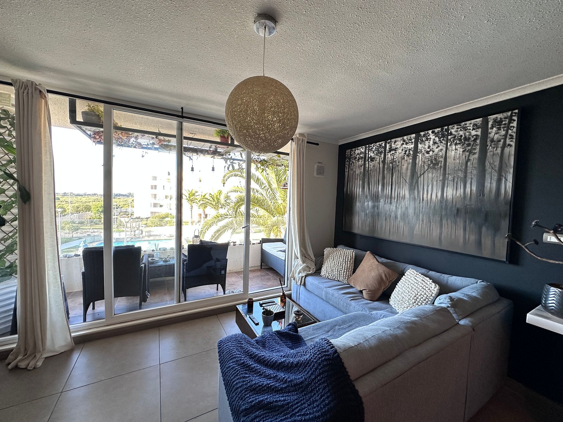 Departamento moderno en Jardines del Pacífico 1 con vista al mar. Cuenta con tres dormitorios, dos baños, cocina americana totalmente equipada, y un amplio living. Disfruta de una terraza con vistas al humedal y la playa, en un entorno tranquilo y natural. El condominio ofrece seguridad 24/7, piscina, quinchos y estacionamiento subterráneo. Ideal para relajarse y disfrutar de los atardeceres.