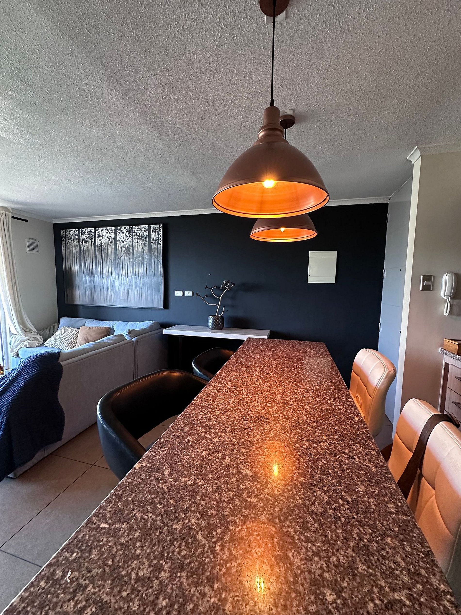 Sugerencia para la estadía en el 301-A 1. Una vez instalado en el depto realizar transferencia bancaria 2. no cerrar los conductos de aire del departamento para evitar humedad en el interior. 3. durante el día mantener ventanas semi abiertas 4. si se recuesta en el sofa, usar las mantas para protejer el sillon de transpiración, suciedad de los pies, o cebo en caso de estar sin polera. 5. al llenarse los papeleros del baño, botar en los contenedores de basura del pasillo utilizando bolsa. 6. si lleva mascotas, evitar el uso de camas y sofas, para evitar orinas sobre estos. (En caso de encontrar manchas de orina o fecas, el dueño se hará responsable). 7. evitar poner los pies en paredes, sobre todo en los dormitorios que se encuentran recien pintados ( supervisar niños). 8. evitar pelos, o depositos solidos en los lavamanos (se tapan) 9. lavar utensilios de cocina, no dejar residuos que tapen el conducto. 10. se sugiere hechar un vaso de agua cada dos días en las plantas de interior. 11. si llevan sabanas poner el forro de almohadas para evitar suciedad de sebo en estas. 12. si necesita realizar asado, comunicarse con dueño para reservar quincho. 13. no sentarse en los sillones de terrasa con short o traje baño humedado para evitar que salgan hongos. 14. no fumar al interior del depto, usar balcon. 15. la clave de internet se encuentra debajo del router. 15. finalmente no realizar fiestas.. y mantener la música a un volumen moderado y a una hora prudente. 16. no se pueden realizar fiestas en el departamento. 17. no enceder las velas (son decorativas)