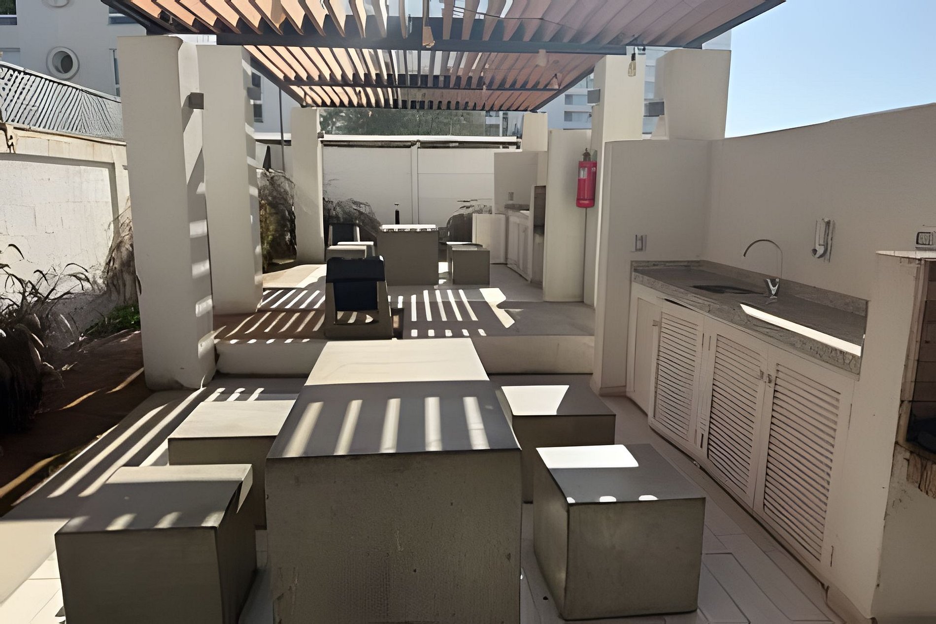 Acceso controlado y vigilancia 24/7. Normas: • No fumar dentro del departamento (solo en terraza). • No se permiten fiestas ni eventos. • Respetar horarios de áreas comunes y piscina. • Mascotas permitidas.